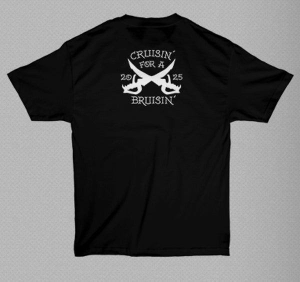 Original Pirate shirt designed by Mike Ski. Reissued with a back print for the Headbangers Boat Cruise. Limited to a print total of 60 units